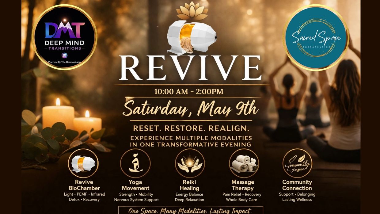 Join us in 2026 for four powerful community events designed to connect, inspire, and revitalize your wellness journey. Each Revive Experience event invites you to explore our space, meet our providers, and sample the unique offerings that make Sacred Space Integrated Therapeutics a hub for whole-person healing.